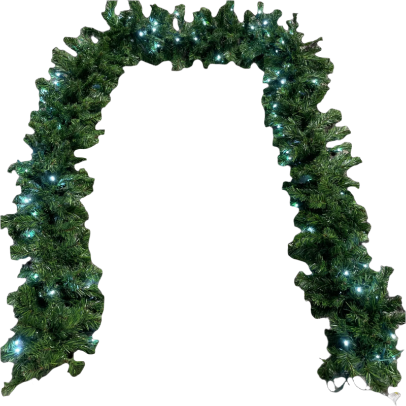 Bring festive elegance to your holiday decor with our 14-inch by 14-foot PVC Pine Garland, pre-lit with 150 cool white LED lights. Lush, full, and crafted from durable PVC, this garland offers a realistic pine appearance without the maintenance. The cool white lights add a crisp, modern glow perfect for indoor or covered outdoor displays—ideal for mantels, railings, entryways, and storefronts.