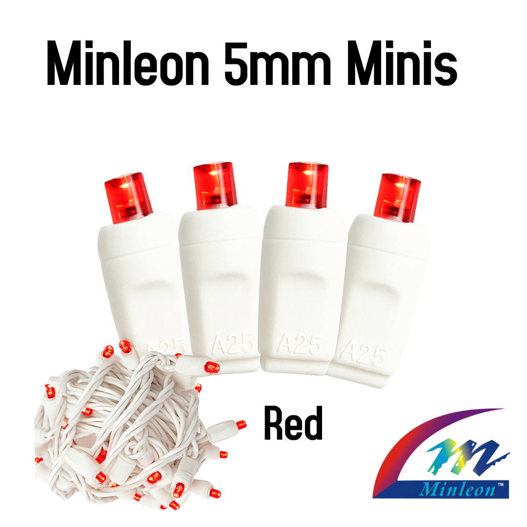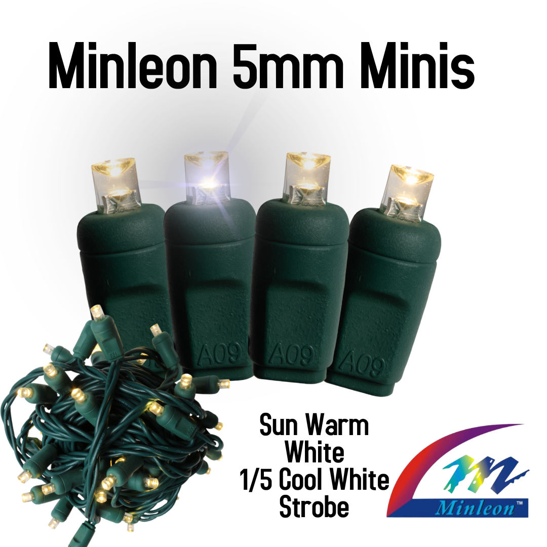 These are commercial grade 5mm mini light strands. Each strand is 25' long. The high-quality strand is water resistant and less likely to trip GFIs during the rain, unlike other strands on the market.