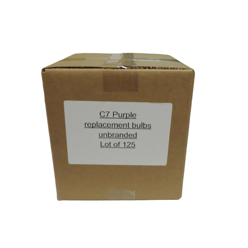 C7 Purple Replacement Bulbs, Lot of 125, Reboxed- FINAL SALE