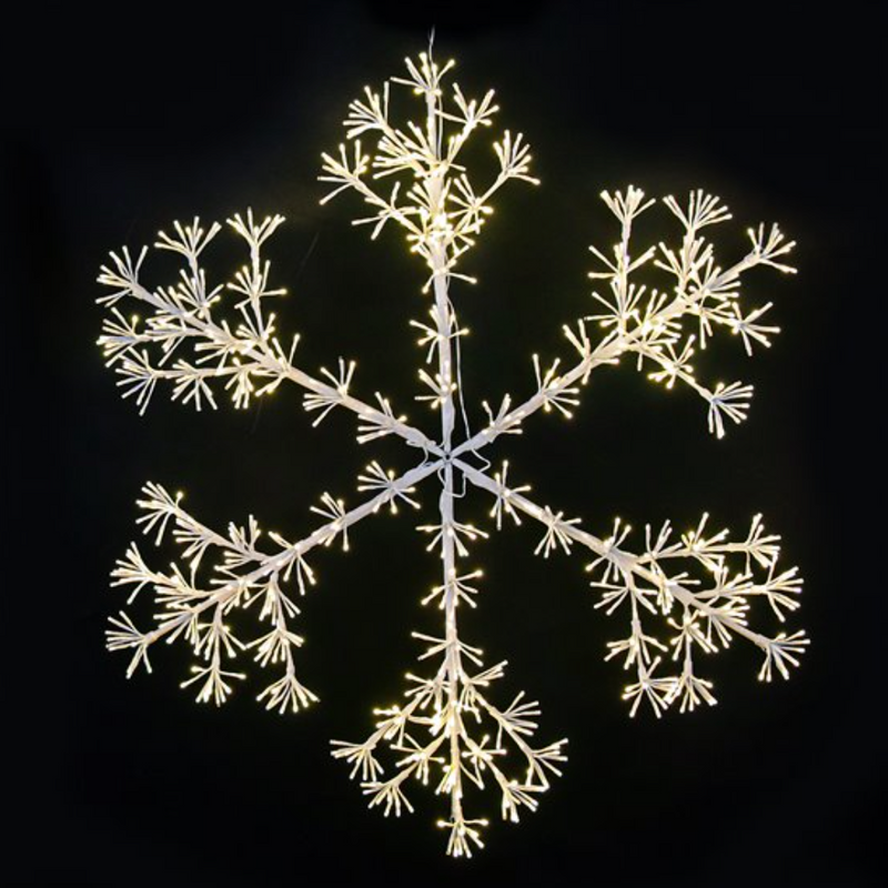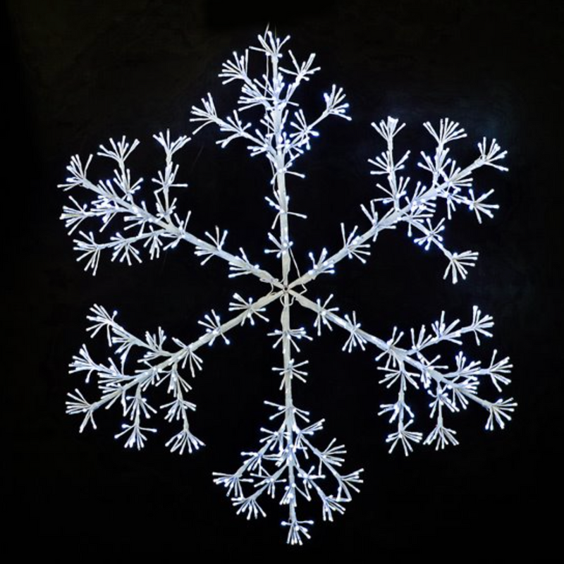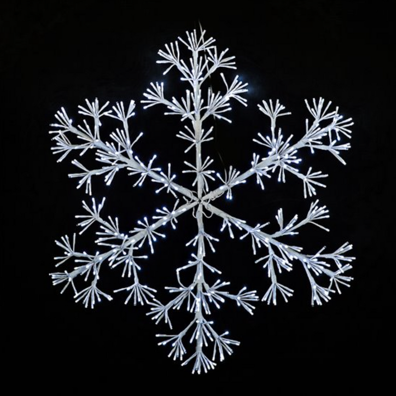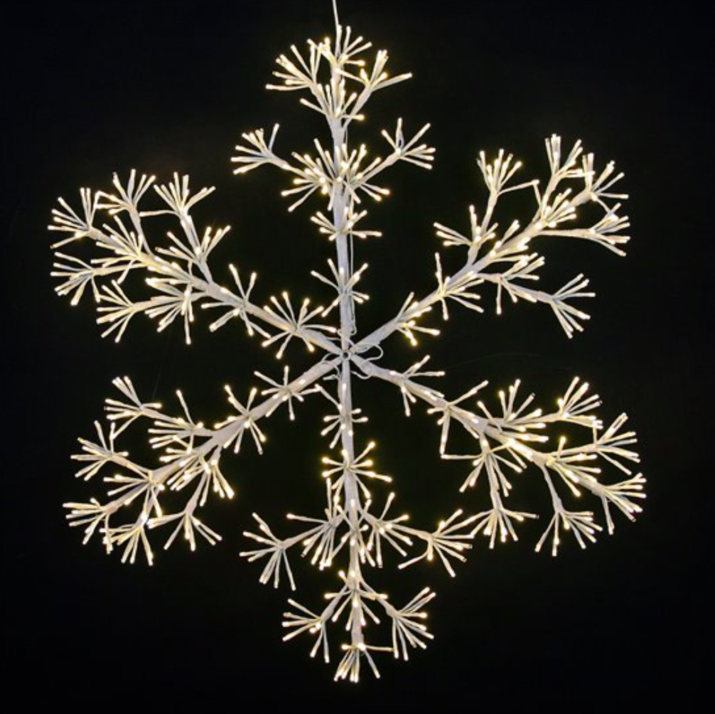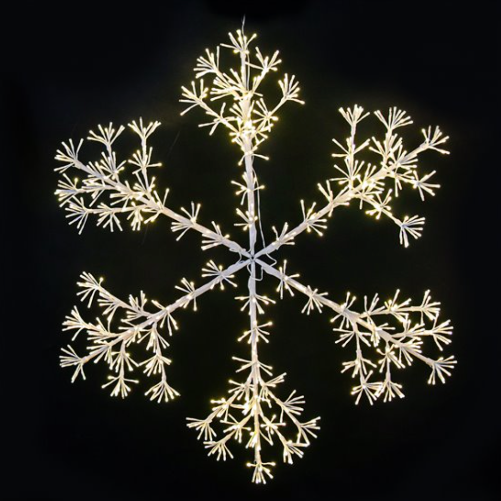 Make any Holiday decorating theme more DYNAMIC! Impressive from every angle! Twinkling LEDs set this snowflake apart. A three dimensional snowflake that features our LED Sparklers. Match them up or mix with classic white Snowflakes. The next level of Holiday decorating. Both elegant and gorgeous. No one will miss this one! The branches of this snowflake are white with pure white lights. Available in two LED colors and three sizes. Quantity: 1