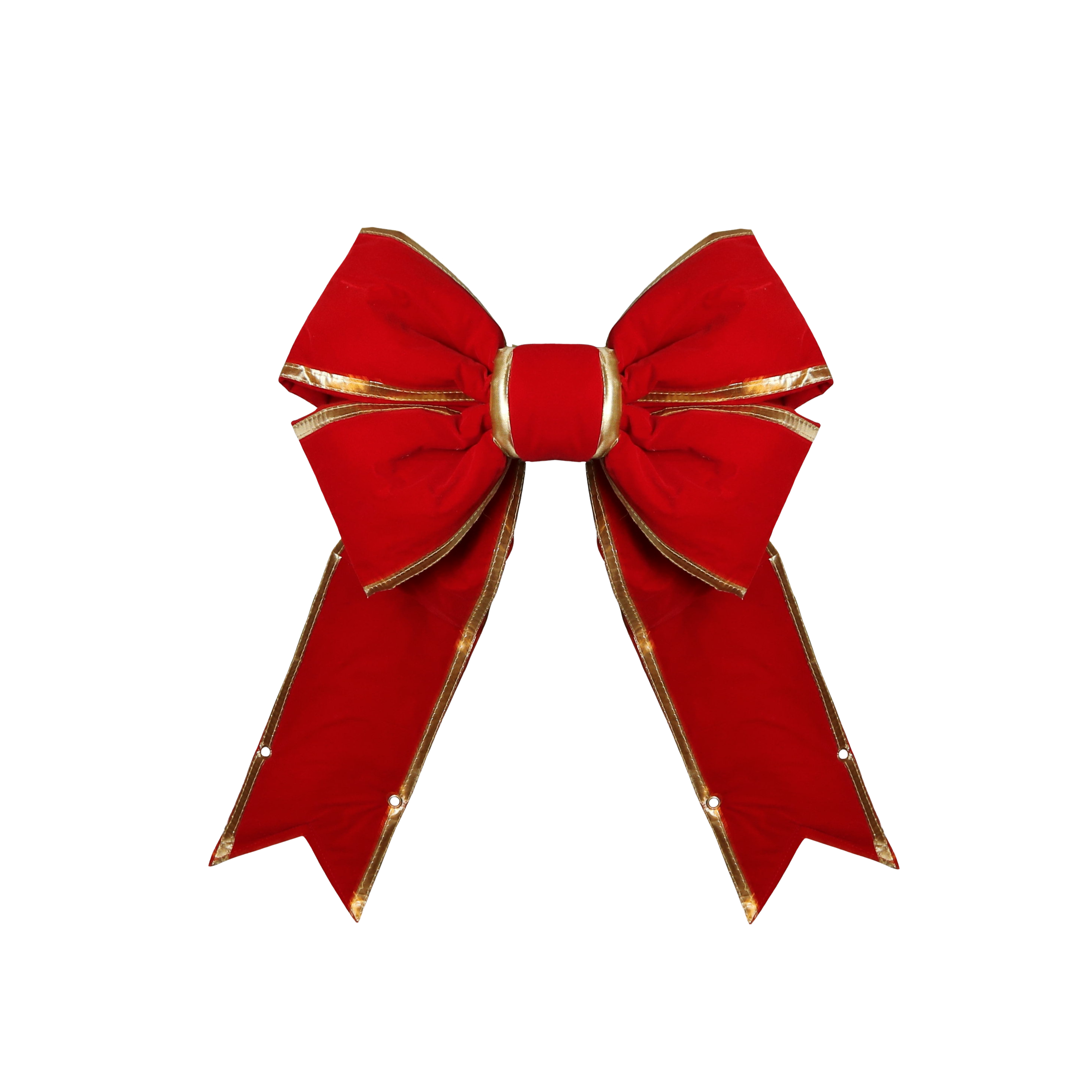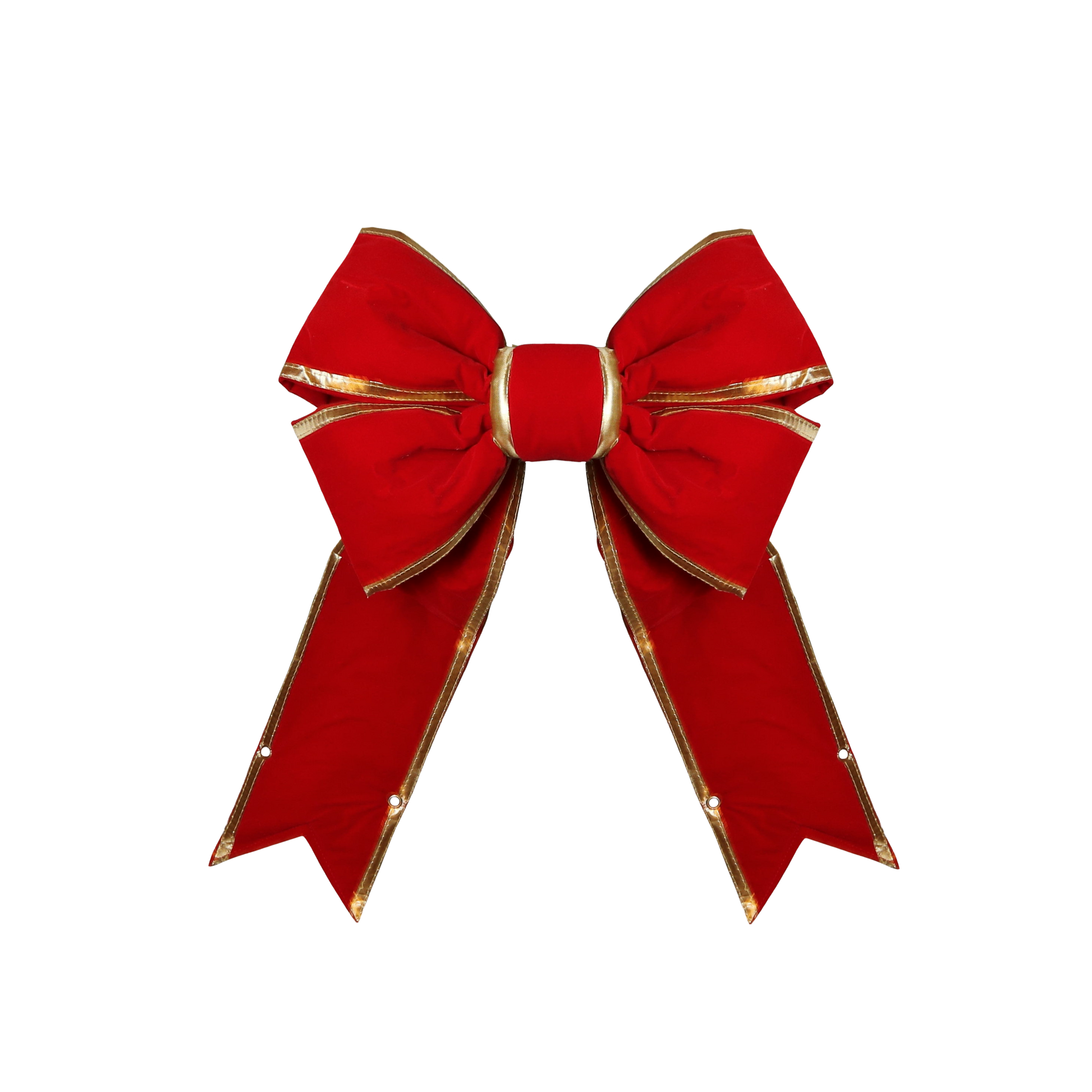 Add festive charm to your holiday lights with our Red Velvet Bow w/Gold Trim. Made with high-quality material, this bow is perfect for both commercial and residential Christmas displays. The luxurious red velvet and shiny gold trim will add a touch of elegance and warmth to your decorations.