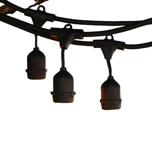 Commercial quality market lighting socket wire, perfect for your next install. Suitable for residential and commercial use, both indoors and outdoors. Sockets feature a T-Frame molding with mounting hole for easier installation. Bulbs sold separately.